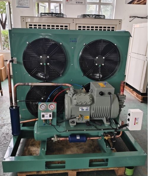 Esto es un 25.HPUnidad de condensación refrigerada por aire producida por nuestro KU.B.La empresa, que es adecuado para el almacenamiento en frío con la temperatura media.Marca y modelo: 4VG-25.2, y el refrigerante es R404A. La unidad de condensación funciona de manera estable y confiable, y está equipada con condensador de 240 cuadrados, secador de filtros, válvula de solenoide, separador de aceite y así sucesivamente.La presión de toda la máquina es de 16 kg., y todos los cables de control son conducidos a la caja de unión.