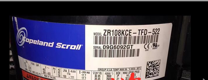 | Compressor model | ZR42K3-PFJ-522 | Compressor refrigerant | R22 |